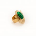 La bague Tahira est sertie d’une magnifique pierre semi-précieuse en Malachite couleur vert Katanga