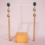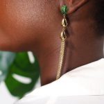 Deux petites noix de kola, une pierre semi-précieuse et des petites chainettes : c’est le secret de la beauté des boucles Dalla . Une pièce résolument lumineuse , qui tient son charme de ses courbes singulières et féminines. L’association de la pierre couleur vert tropical et des chaînettes les rendent irrésistiblement charmantes. Parfaites pour passer les fêtes en toute beauté !